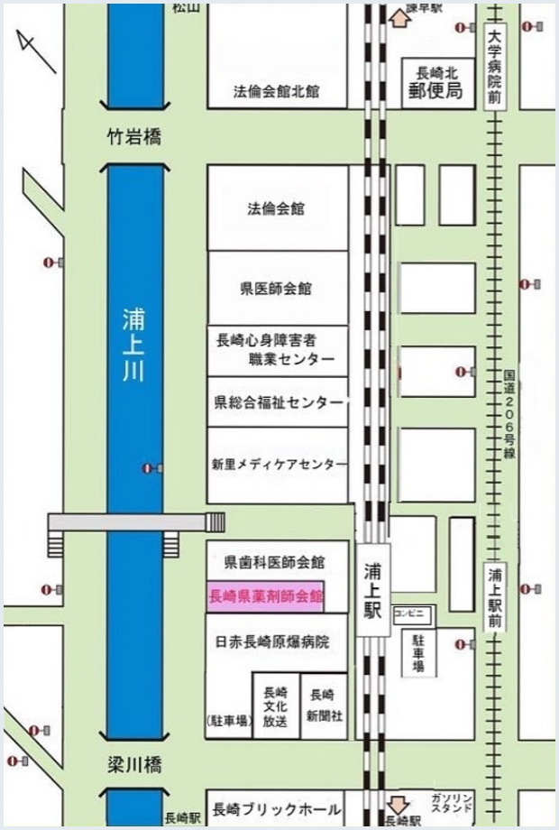 ・路線バス(県営バス):浦上駅前バス停下車→徒歩2分